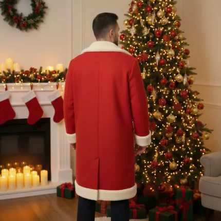 Lady Fur Collar Splice Coat Red Faux Leather Coat