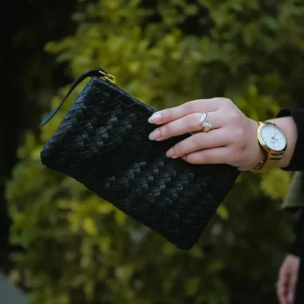 Coffer Mini Handwoven Leather Zipper Clutch-Black