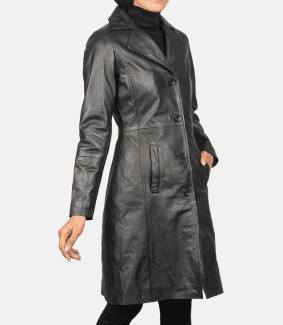 Alexis Women’s Black Single-Breasted Leather Trench Coat