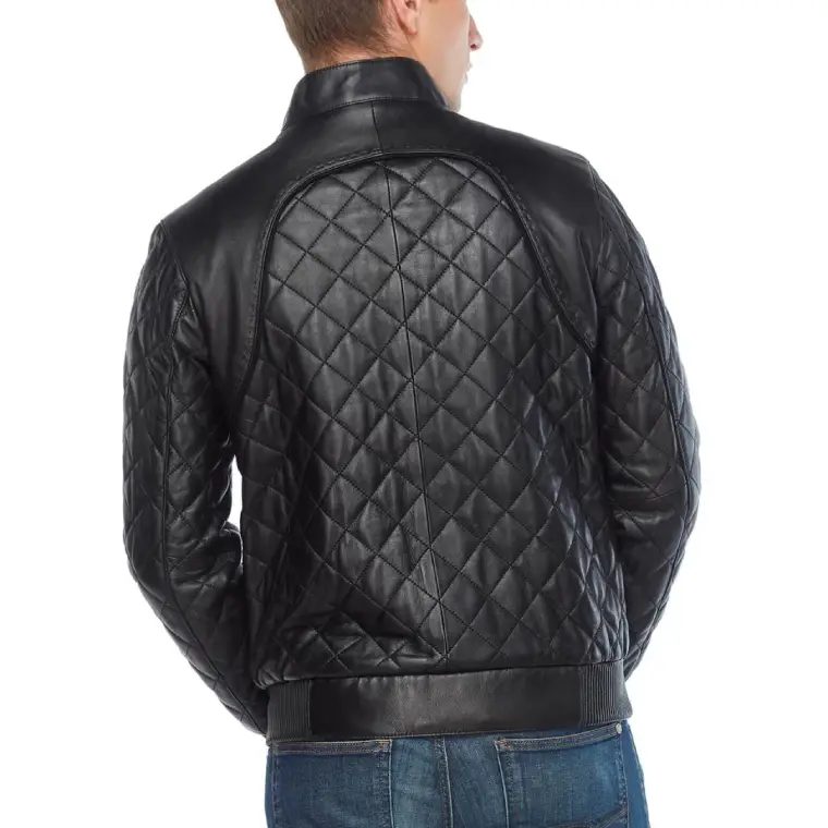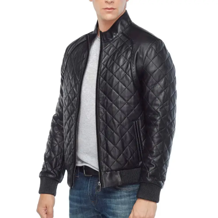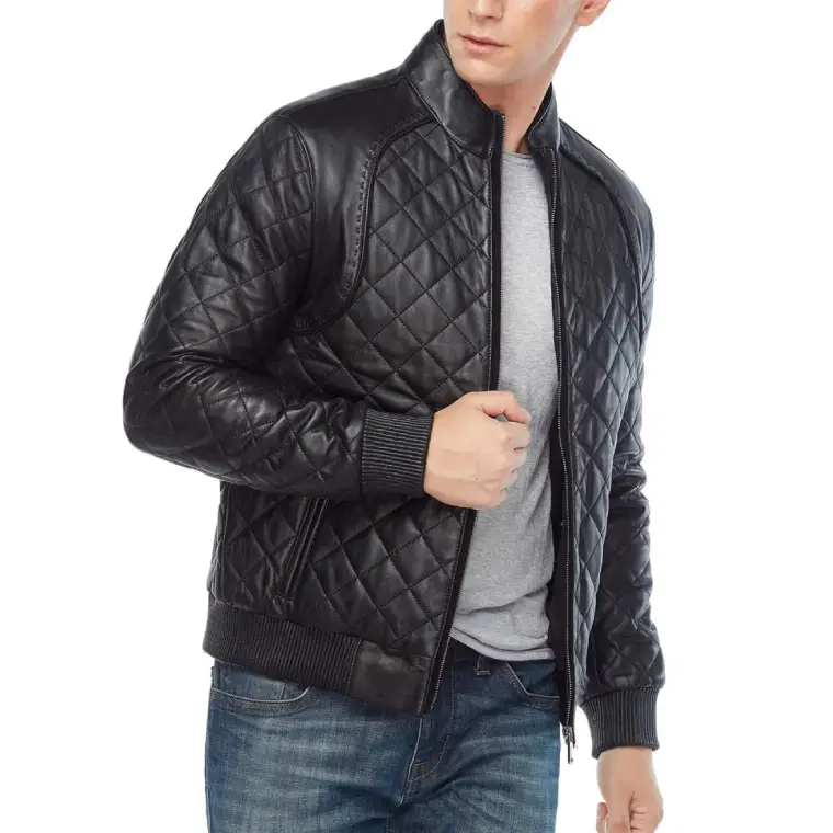 Catalyst Men’s Black Quilted Leather Bomber Jacket
