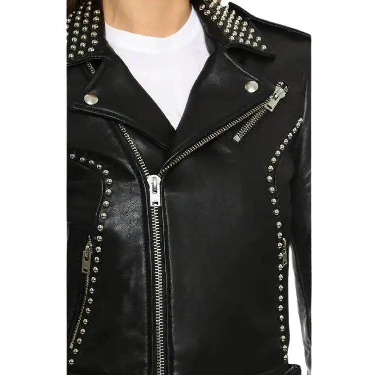 Chic Aria Women’s Studded Black Leather Biker Jacket