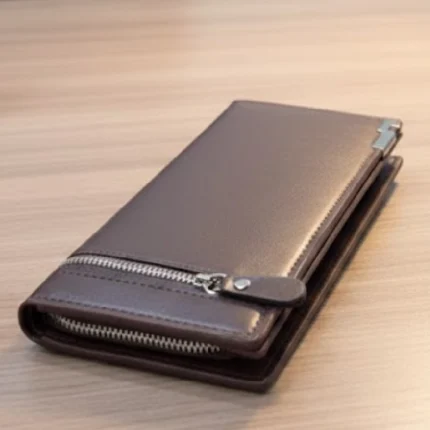 Classic Brown PU Leather Zipper Wallet for Men