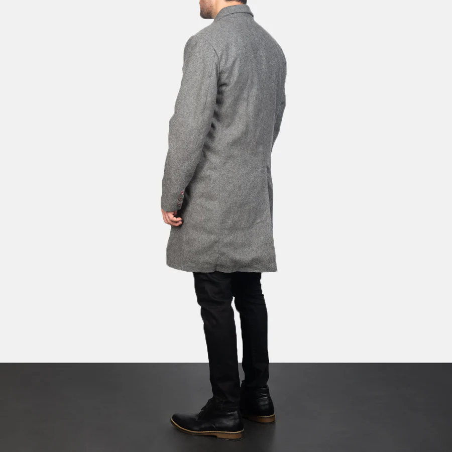 Claud Men’s Grey Double-Breasted Wool Trench Coat