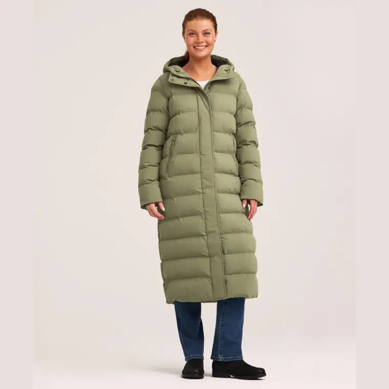 As a dependable women’s knee length puffer jacket, it balances protection and practicality. The adjustable hood adds coverage on windy days, while the storm placket and two-way zipper allow flexible movement. Its knee-length design provides extended coverage, making it a smart option for commuting, travel, and prolonged outdoor wear.