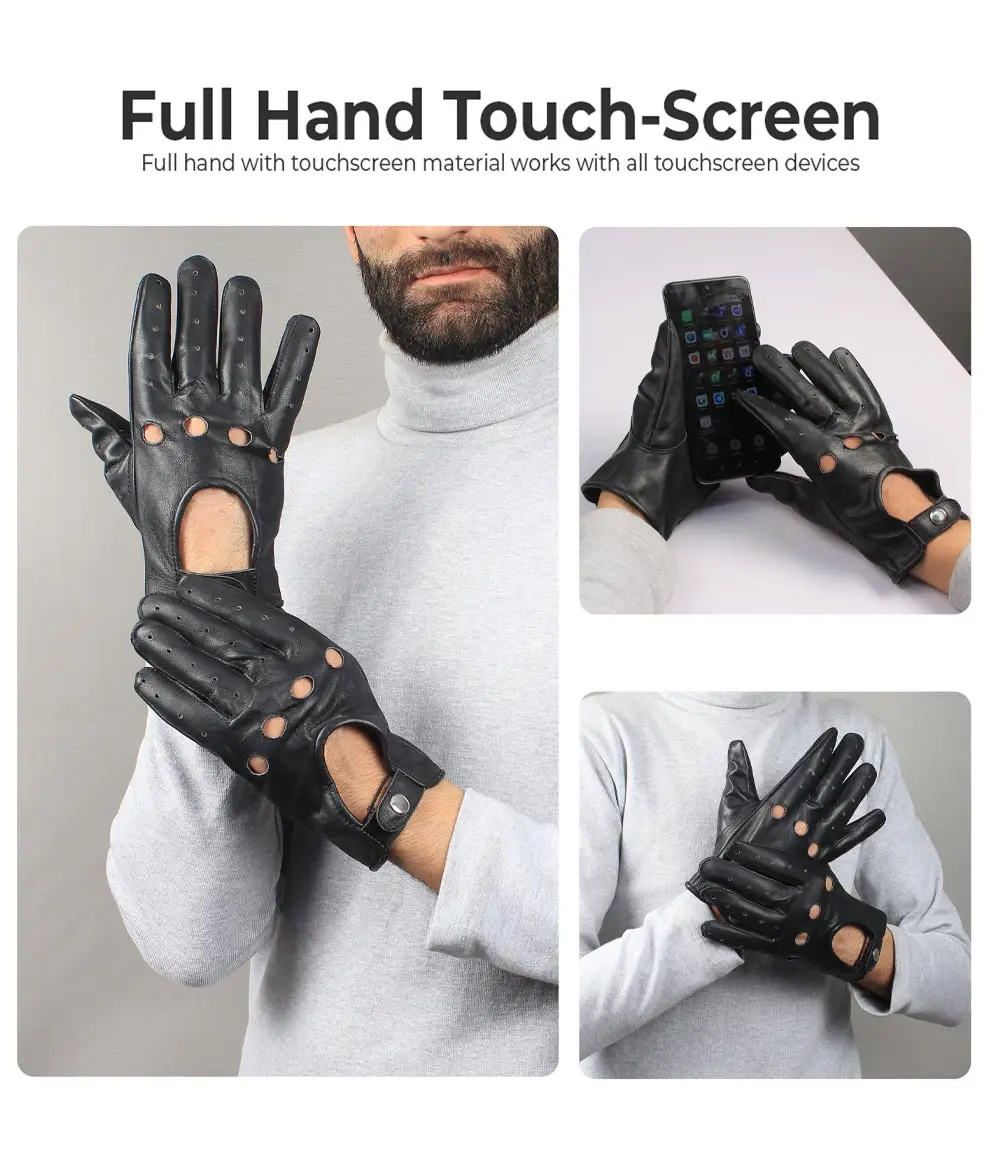 Level up your style with our black leather driving gloves, crafted for those who demand a bold look and premium performance. These men’s real leather black gloves are made from buttery lambskin and feature touchscreen-compatible technology for seamless use on the go.