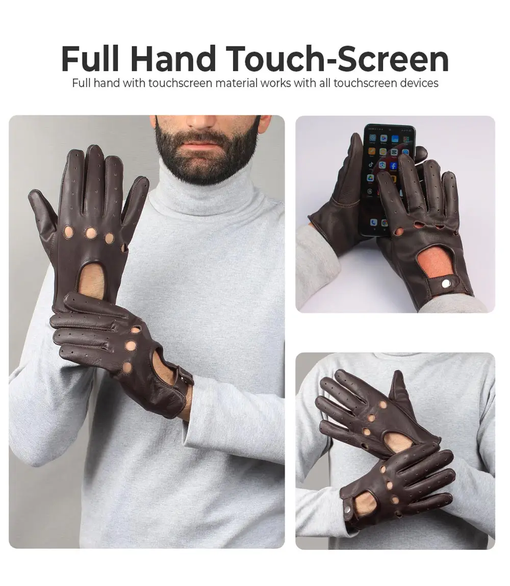 The comfortable, tactile fit offers touchscreen compatibility for seamless navigation and phone use. Designed for the road, these durable brown leather driving gloves provide the perfect balance of performance and luxury behind the wheel.