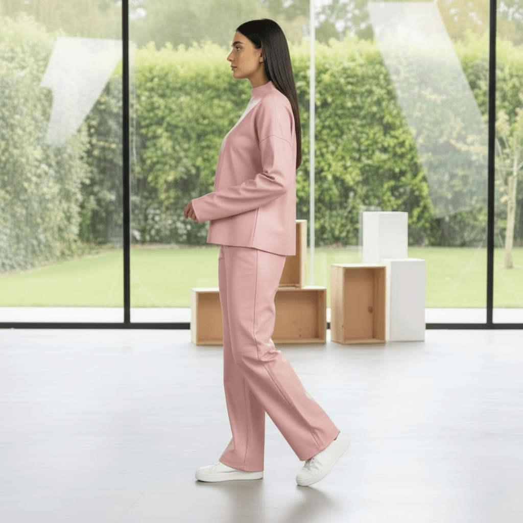 Faux Leather Mock Neck Top And Trousers Co-ord set