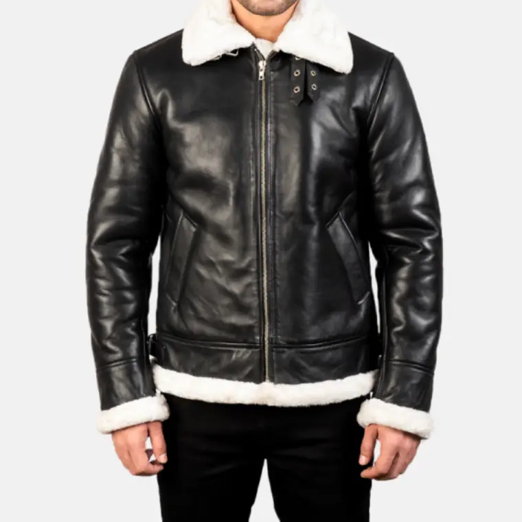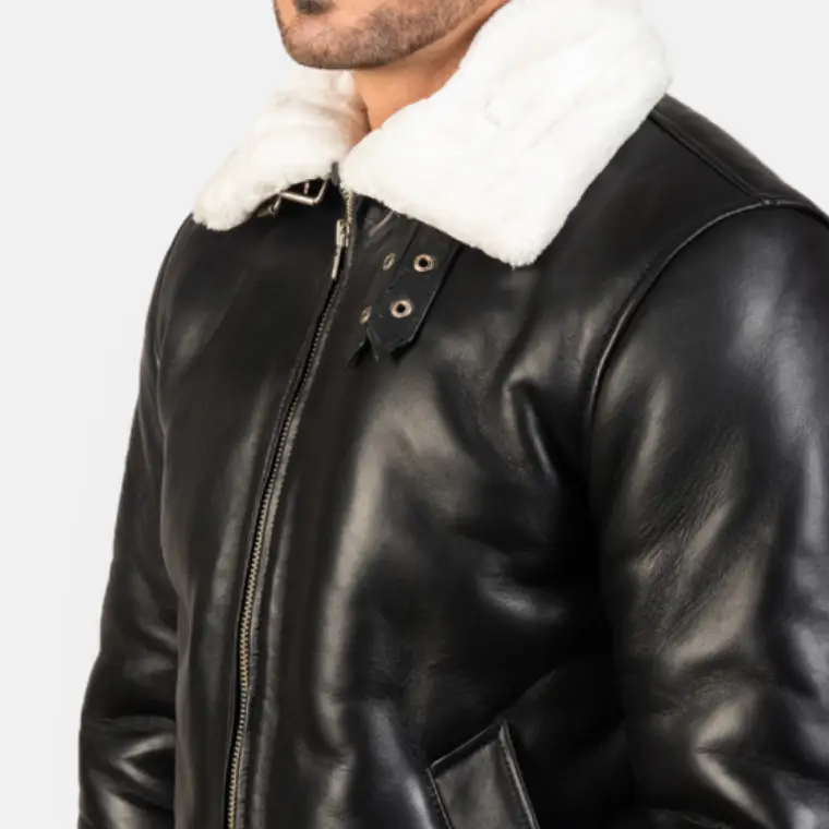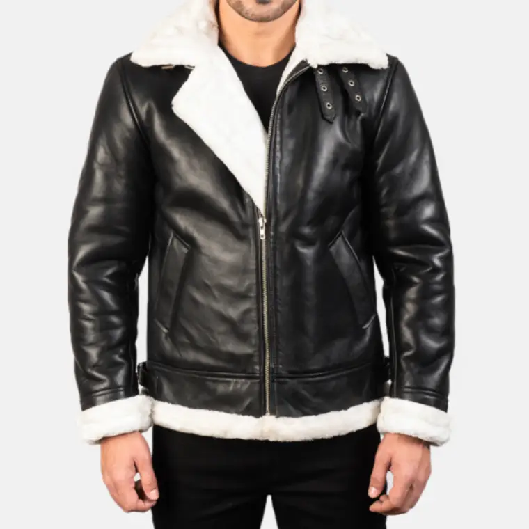 Francis Men’s Black And White Leather Fur Bomber Jacket