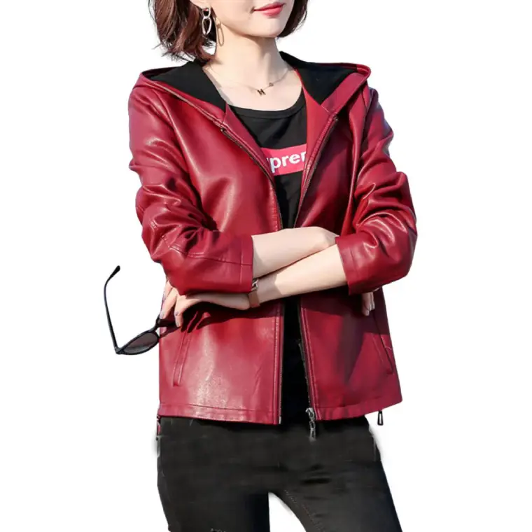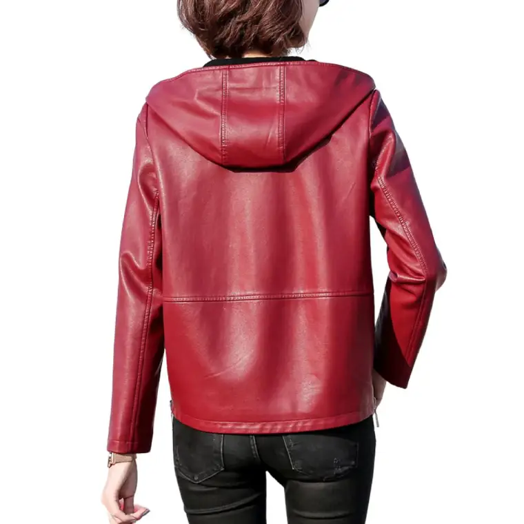 Designed as a red hooded leather jacket, it works well for casual styling, pairing effortlessly with denim or neutral layers. It’s a reliable option when you want color, comfort, and everyday practicality in one piece.