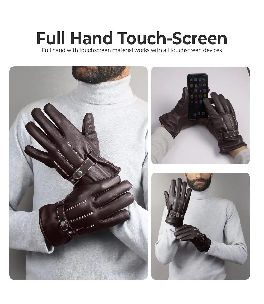 Jasper Brown Leather Gloves With Strap Closure For Men