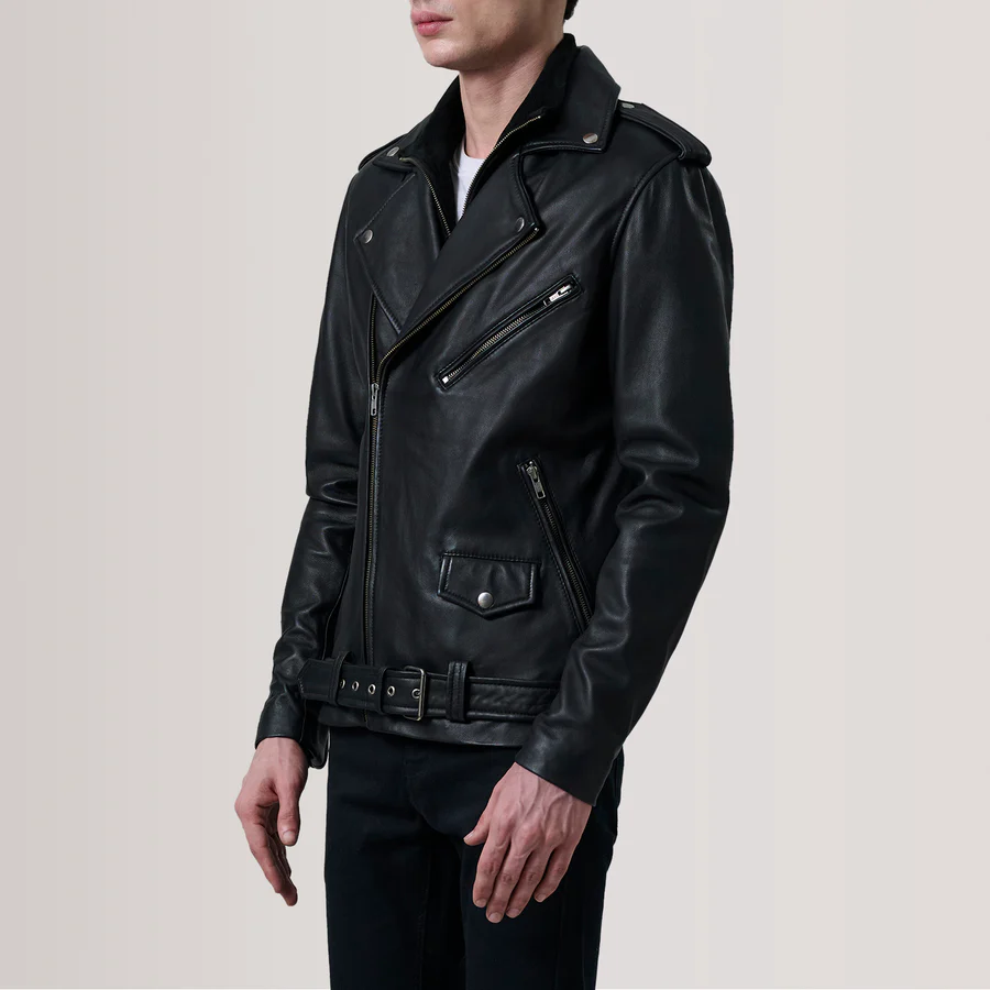 Darren Black Leather Biker Jacket for Men