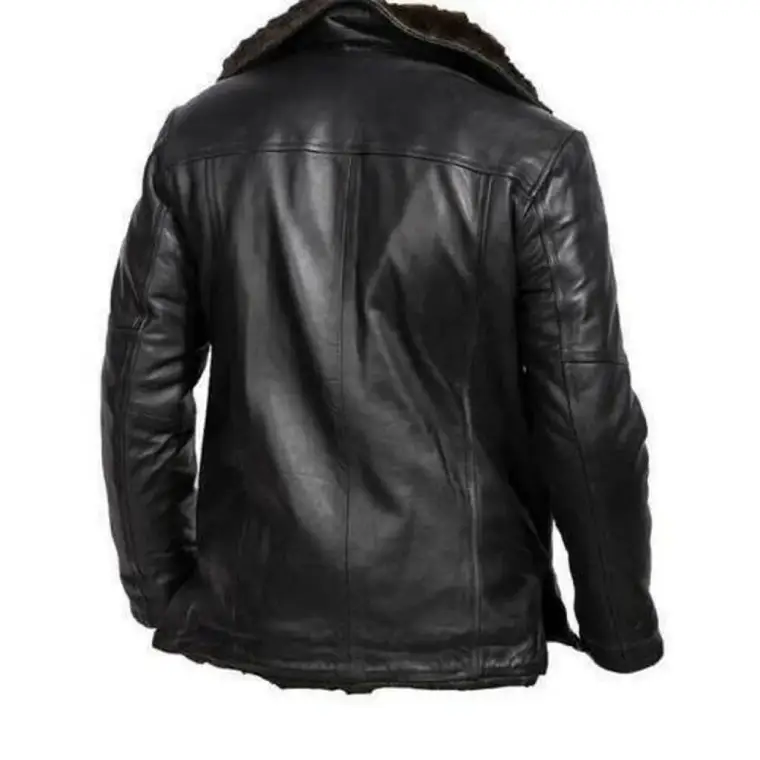 This black fur lined shearling jacket for men includes a front zipper closure and clean-edge cuffs and hem for a modern, streamlined look. It delivers comfort, warmth, and understated style throughout the colder months.