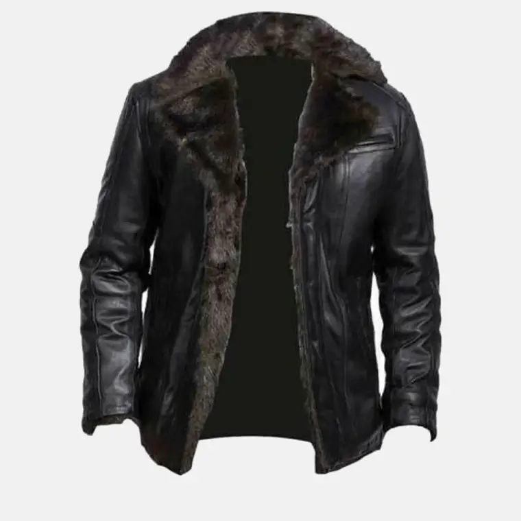 Built for warmth and simplicity, this men’s black shearling leather jacket features durable sheepskin leather paired with a plush fur-lined interior. The clean, minimal design makes it a reliable choice for everyday winter wear.