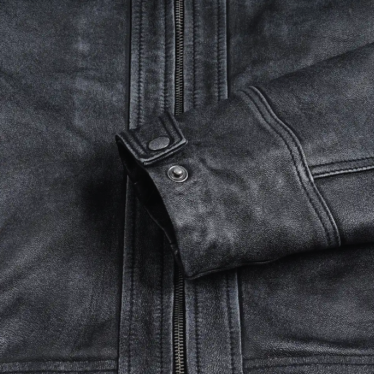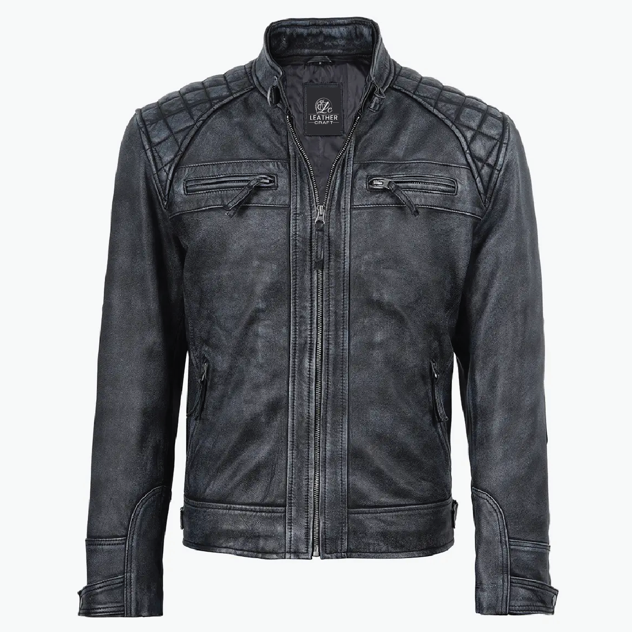 Step up your fashion game with this distressed black leather jacket for men now on limited-time sale! Designed with a washed distressed finish, this jacket brings a bold, edgy vibe to any outfit. The zip-front black leather jacket offers a sleek, comfortable fit, perfect for day-to-night wear.