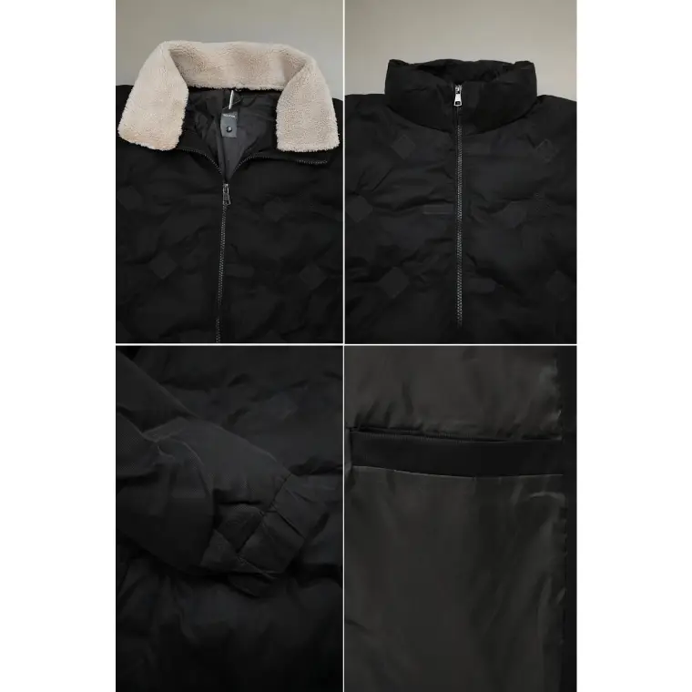 Texture sets this sherpa collar puffer jacket apart, giving it a refined yet winter-ready identity. The embossed diamond pattern adds depth, while the removable sherpa collar allows you to shift between bold and streamlined looks.