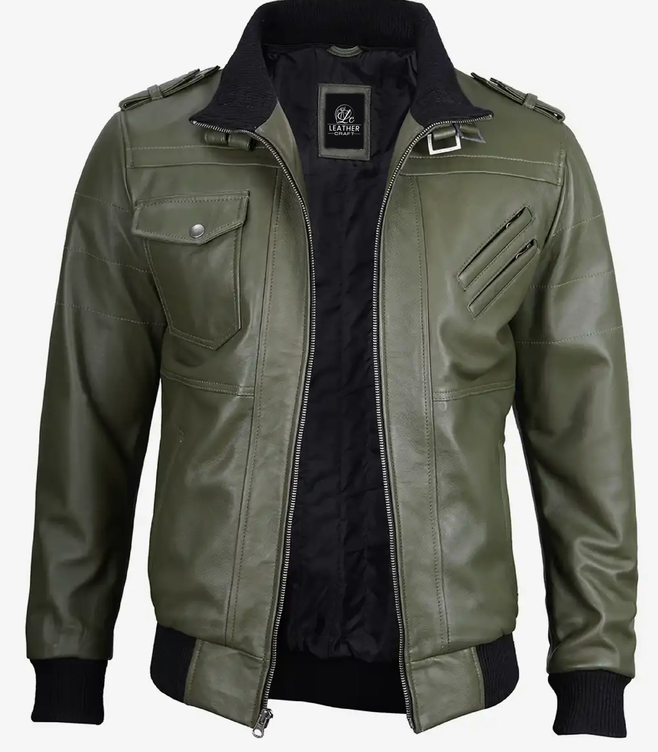 ✔ Intense Olive Green Lambskin Jacket for a Distinctive Look.