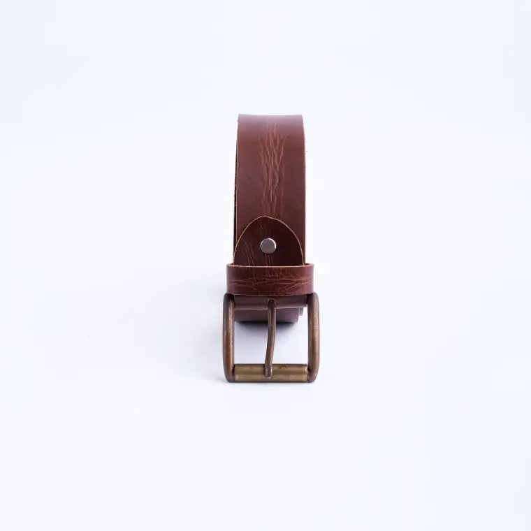 The rustic leather belt for men comes with a standard 1.5-inch width and is perfectly sized for casual loops, while the reinforced construction ensures reliable daily use. Finished with a military-grade brass buckle, this men’s cognac casual leather belt provides a rich hue that offers versatile styling for any denim or casual look.