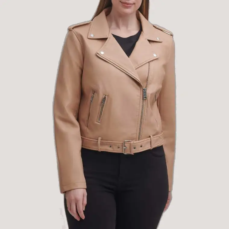 Shop Women Belted Moto Biker Jacket Water Repellent