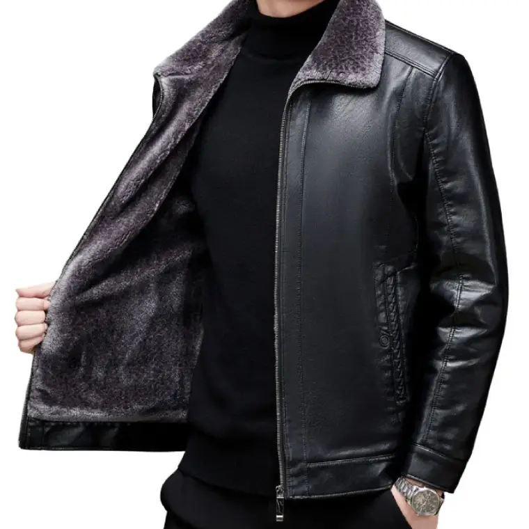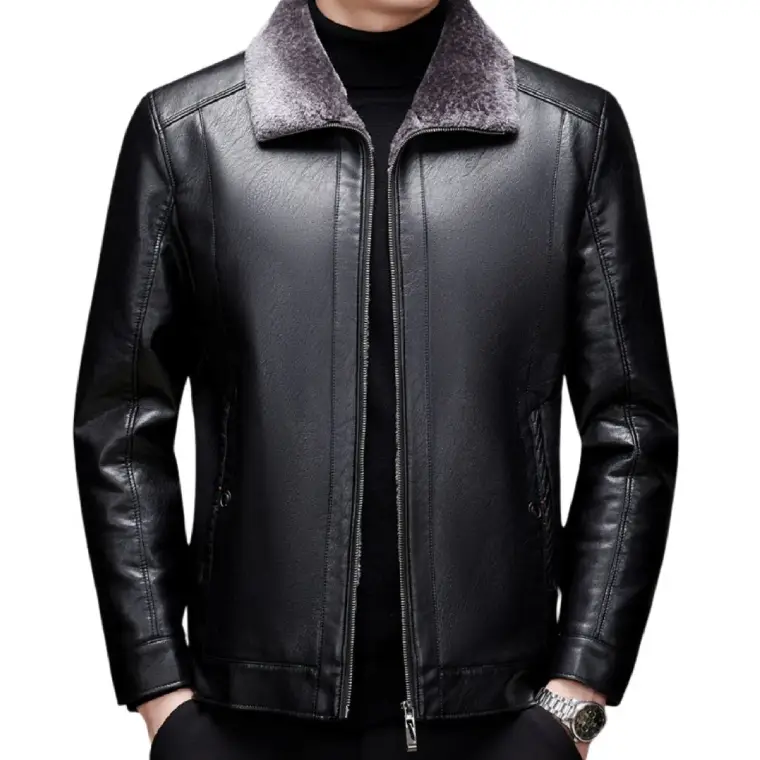 Built as a faux fur lined leather jacket, it includes a shirt-style shearling collar and open hem cuffs for a relaxed silhouette. This jacket delivers dependable comfort with a practical, everyday look.