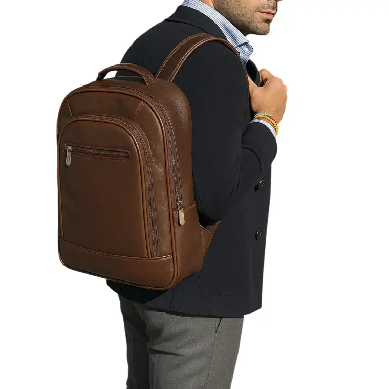 Built for the tech-savvy professional, the spacious interior of this 3-compartment leather backpack includes a 17-inch padded laptop pocket secured with a retention strap. Fully adjustable shoulder straps ensure balanced load management, while 3 external zipper pockets provide organized access to essentials. It is the ultimate choice for sophisticated, high-performance travel.
