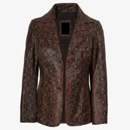 Kathryn Cognac Snake Pattern Leather Blazer for Women